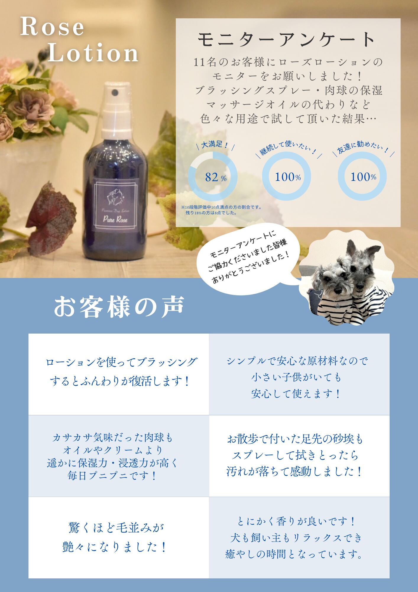 天然のローズの優しい香りは、モニターの方全員から「とにかく香りが良い!」「癒される」「好きすぎる」と言われた程良い香りです。